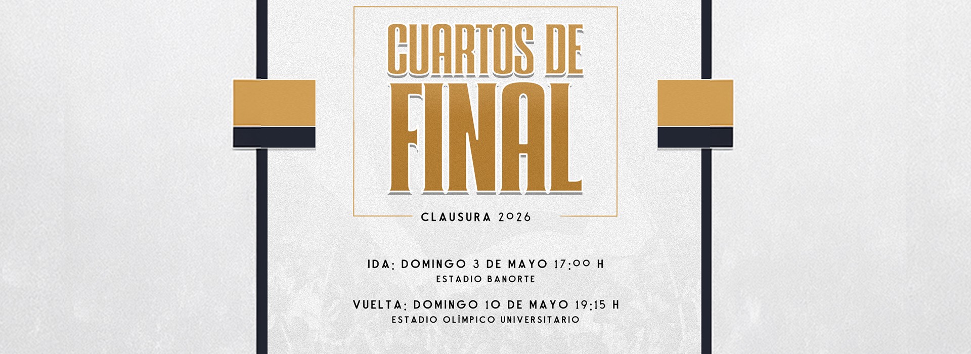 Los universitarios arrancarán la serie el domimgo 3 de mayo en el Estadio Banorte, a las 17:00 horas. Una semana después, el domingo 10 de mayo, el cuadro que dirige Efraín Juárez disputará la vuelta en el Estadio Olímpico Universitario a las 19:15 horas.